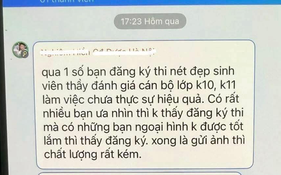 Ngày 16.4, mạng xã hội lan truyền đoạn tin nhắn được cho là của một giảng viên Trường CĐ Dược Hà Nội, liên quan đến cuộc thi nét đẹp sinh viên của trường. Nội dung tin nhắn gây tranh cãi khi nhiều ý kiến cho rằng đã miệt thị ngoại hình sinh viên.